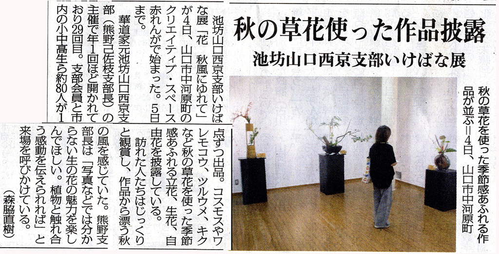 | 2025.10.05 山口新聞 池坊山口西京支部いけばな展 |