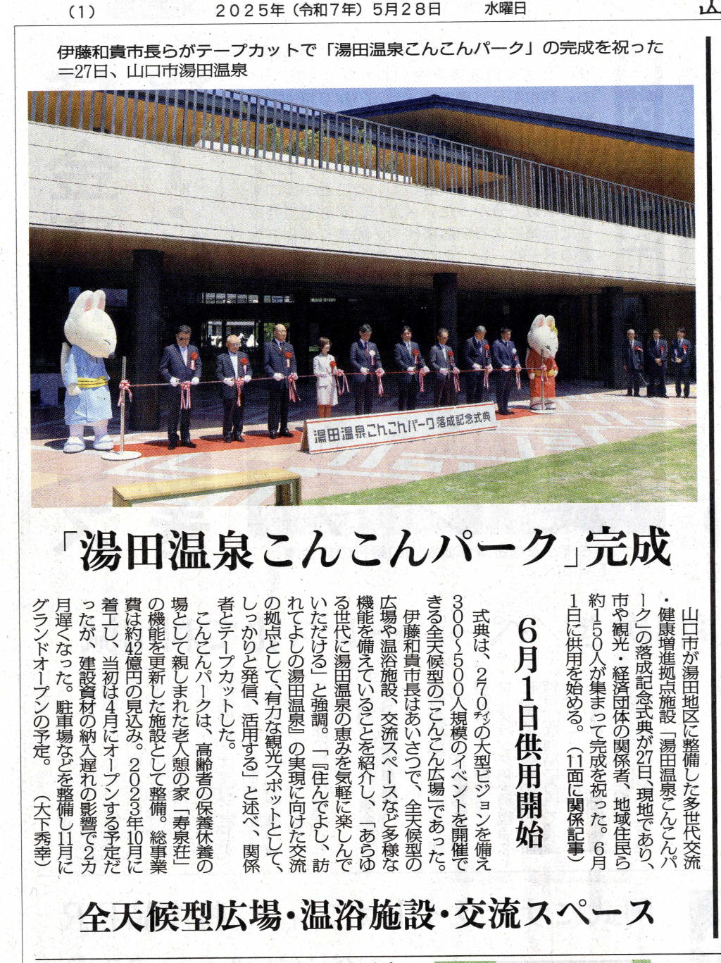 | 2025.5.27 山口新聞記事 湯ク田温泉 こんこんパ−ク |
